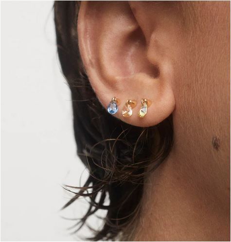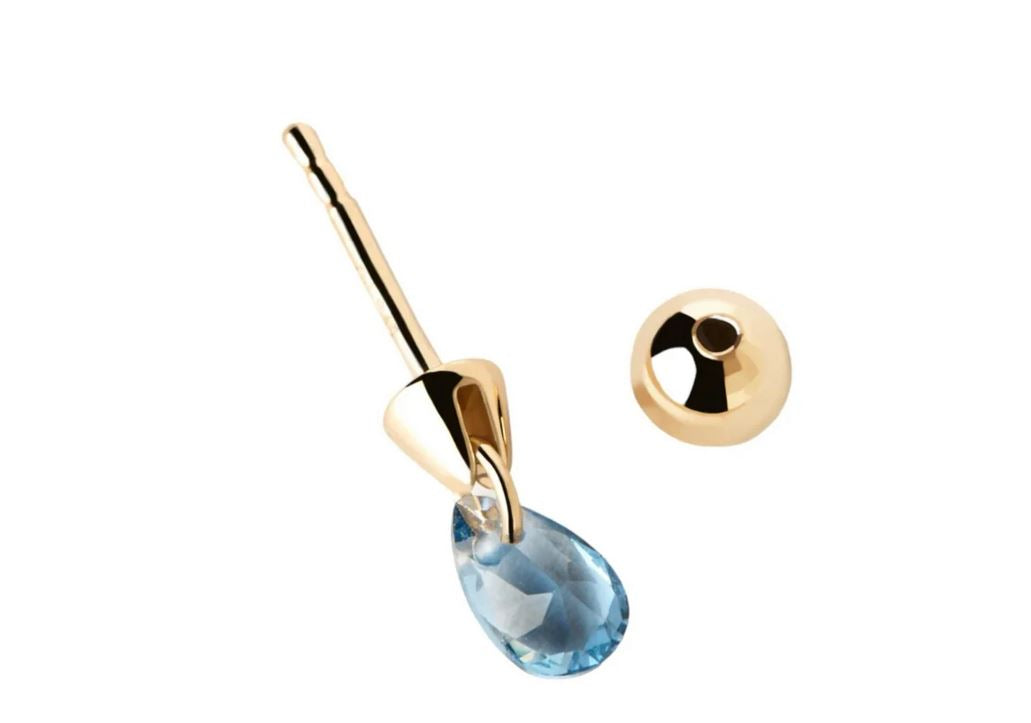 Orecchino a lobo mono  placcati oro 18k  con pendente a goccia in zirconi blu